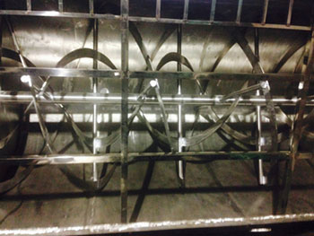 结构形式:卧式四螺带搅拌电动翻斗,便于冲洗