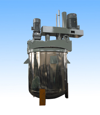 DJF型多功能分散混合机是我厂针对高粘度厚浆型涂料的一种创新设计。该设备采用先进的同心双轴设计,有效地结合多种形式的搅拌,即由带绞链型刮璧装置的框式搅拌器和带有推进式涡轮搅拌器和锯齿形圆盘分散轮的中心轴组成。框式搅拌器件慢速带圆周运动,同时起到搅拌混合和刮壁的作用,持续刮走容器壁上的物料,并将其带向容器中部分散区,促进混合:中心轴转速可在0~120转/分之间任意调节,具有强力分散作用。二种功能可同时使用,也可单独动作,操作灵活方便。该设备密闭设计可真空脱泡,亦可加夹套冷却。本设备已系列化,容积由1000L~15000L多种规格。